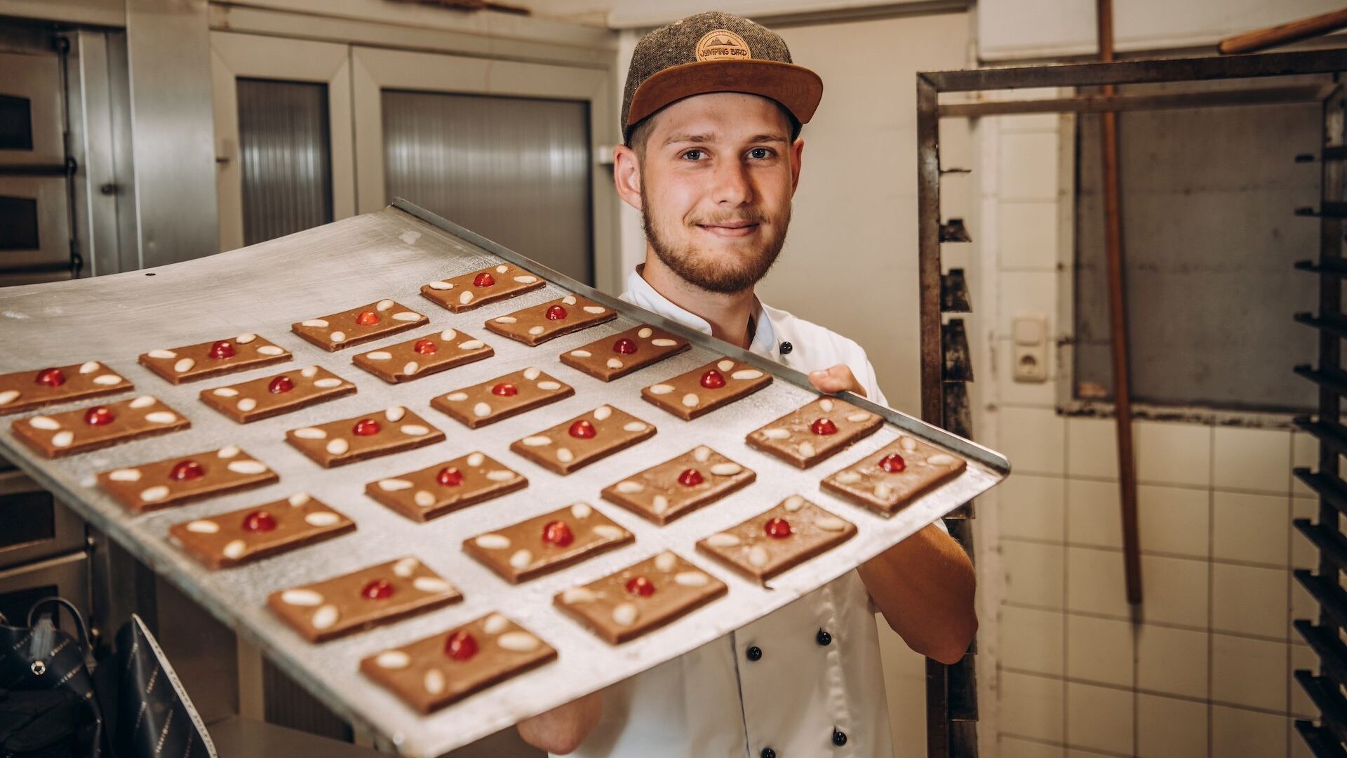 Durch die Kommerzialisierung ist der Lebkuchen insbesondere in der Herbst- und Weihnachtszeit ein Verkaufsschlager. Florian versucht, dieses eingebrannte Muster zu verändern, was schwierig ist. In früheren Zeiten diente dieses Fladengebäck als Kraftnahrung für die Wallfahrer. „Heute kommen immer wieder Wanderer zu mir, die meinen Lebkuchen als Energiespender mitnehmen“, unterstreicht der Tiroler. Die verschiedenen Gewürze sorgen unter anderem dafür, dass der Zucker langsamer ins Blut abgegeben wird. Der junge Lebzelter probiert immer wieder Neues aus. Ihm ist es wichtig, dass die Zutaten aus der Region kommen. Florian freut sich, dass auch schon heimische Urkörner verarbeiten kann und hofft, dass dieser Trend noch stärker wird. Der Tiroler hat auch einen österreichischen Imker gefunden hat, der ihm seinen gesamten Honig liefern kann. Florian setzt auf den Blütenhonig, weil dieser sehr neutral schmeckt. Wichtig ist, dass der Honig reif ist. Das bedeutet, dass er einen geringen Wasseranteil aufweist und nicht gären kann. Damit steigt logischerweise der Zuckeranteil und somit muss diese Zutat nicht extra zugesetzt werden. „Ich habe auch schon mit Sauerteig gearbeitet, weil er dem Lebkuchen eine gewisse Lockerheit verleiht. Das hat gut funktioniert. Früher wurde viel mit Sauerteig gearbeitet, wobei es schwer ist, gute Quellen dafür zu finden“, sagt der 27-jährige. Florian erforscht viel, so hat auch schon mal Rauchsalz verwendet, weil die Lebkuchen früher im Holzofen gebacken wurden und somit durchaus eine rauchige Note annehmen konnten. Florian Kitzbichler ist kreativ und entdeckt immer wieder Neues, das er mit Begeisterung ausprobiert.