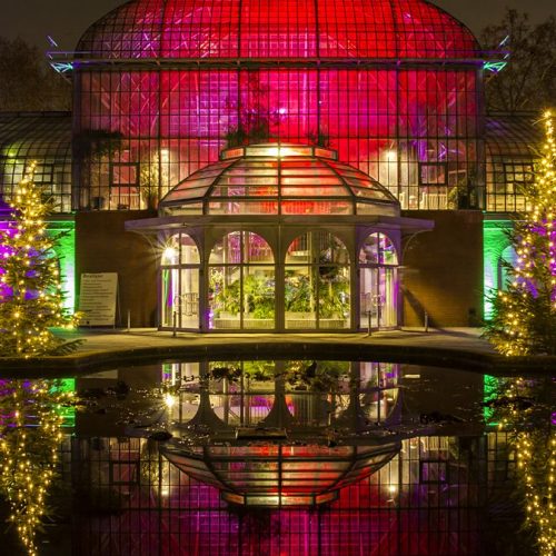 Palmengarten Frankfurt mit winterlichen Lichtinstallationen