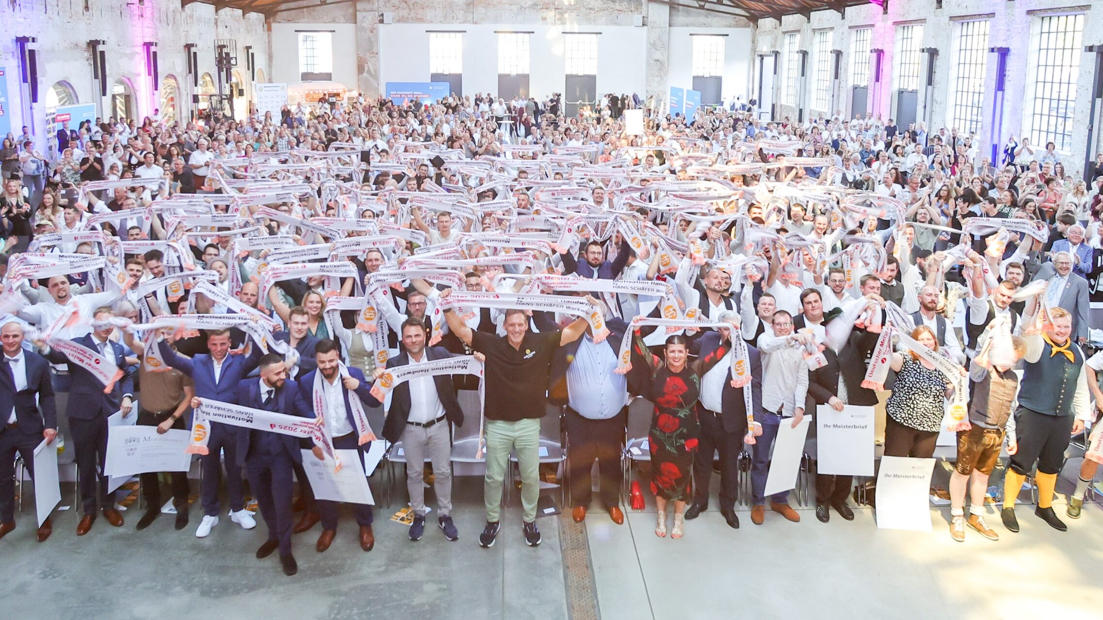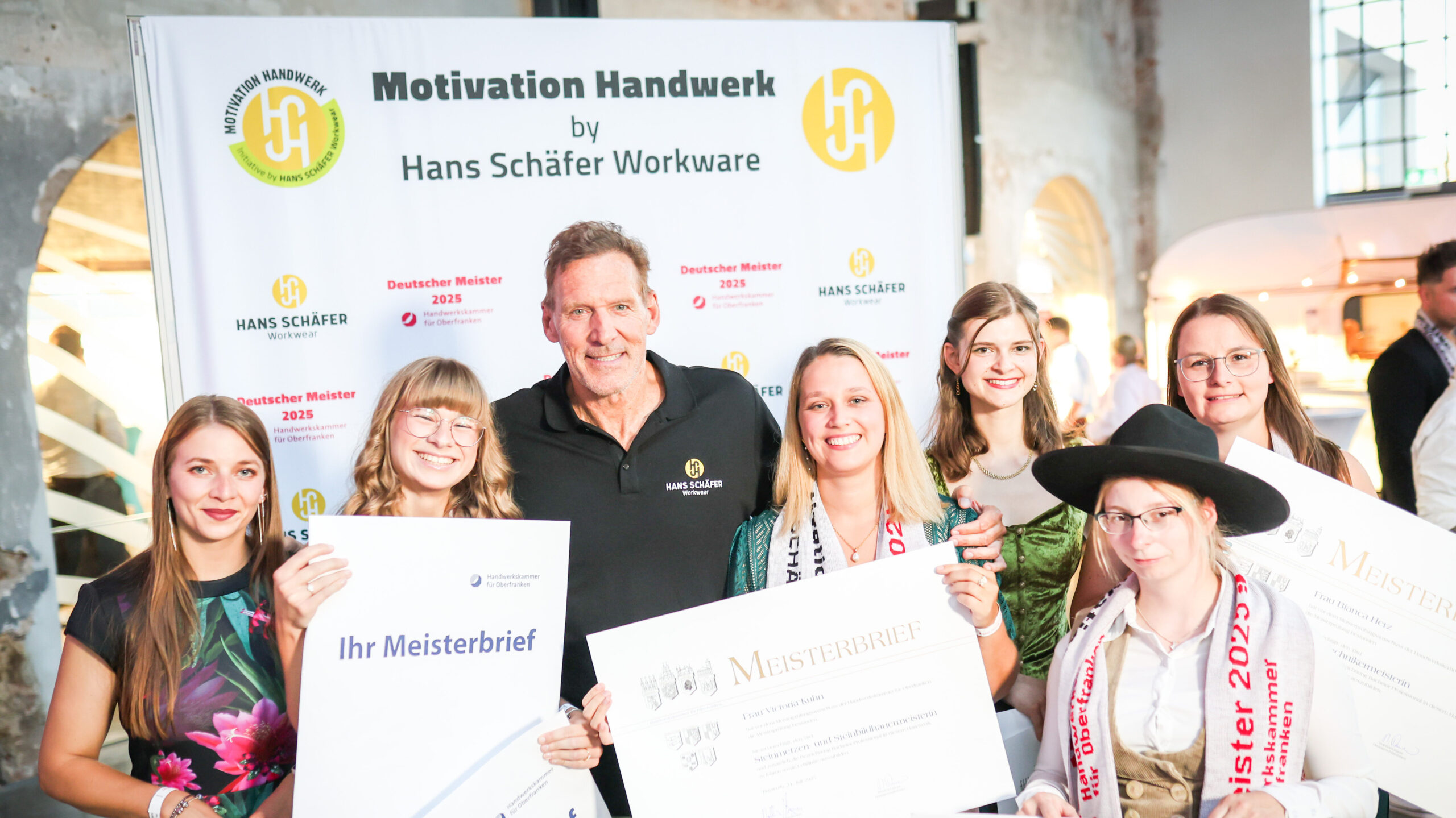 Über 1.250 Gäste feiern die Jungmeisterinnen und Jungmeister, die die Meisterschulen der HWK für Oberfranken erfolgreich absolviert haben. Sie sind begeistert von der authentischen und starken Wertschätzung, die Ralf Moeller dem Handwerk entgegenbringt. Und noch viel mehr: Er setzt sich seit 2023 gemeinsam mit Andreas Grewe, geschäftsführender Gesellschafter des Bamberger Traditionsunternehmen Hans Schäfer Workwear, für mehr Wertschätzung und Nachwuchsförderung im Handwerk ein. Mit der Initiative „Motivation Handwerk“ webt er ein dichtes Netz prominenter Unterstützer und lenkt das Scheinwerferlicht gezielt auf das Handwerk. Aus Überzeugung. „Das Handwerk ist nicht nur Tradition, sondern auch Zukunft“, betont der Schauspieler und erfolgreiche Unternehmer. „Es ist stark, voller Chancen, Erfolg und Lebensqualität.“ Die Initiative von Moeller und Hans Schäfer Workwear wurde vergangenes Jahr von der deutschen Wirtschaft als „Innovator des Jahres 2024“ ausgezeichnet.