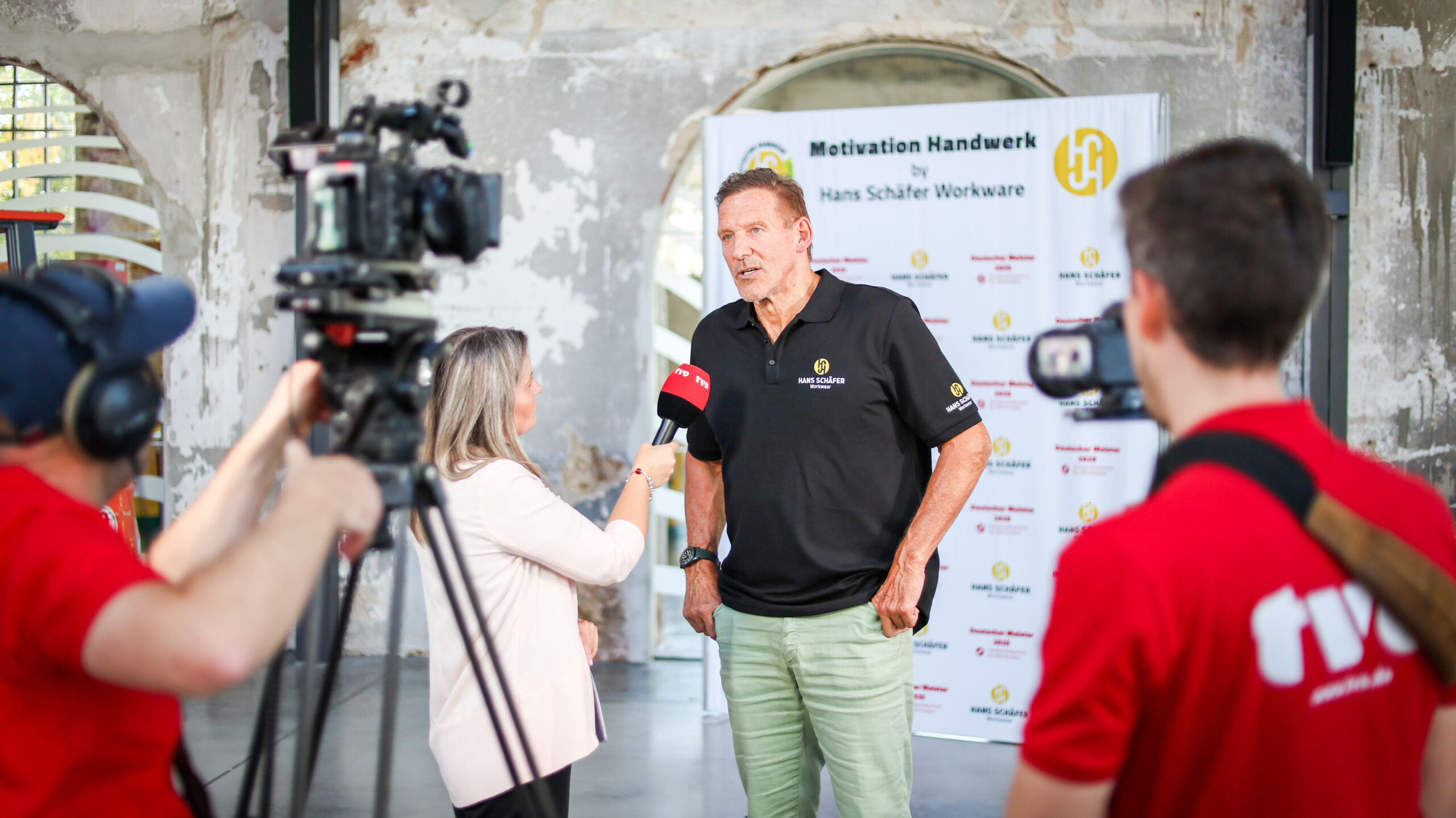 Die Zusammenarbeit mit Ralf Moeller entstand aus einer gemeinsamen Überzeugung: Das Handwerk braucht eine starke Stimme. Moeller, der in Recklinghausen aufwuchs, kennt die Welt des Handwerks von klein auf – sein Vater war Schlosser und schweißte ihm die ersten Hanteln. Aus dieser Basis entwickelte sich eine Karriere als Fitness-Ikone, Schauspieler, Regisseur und Unternehmer. Schon immer engagierte sich Moeller weit über die Filmbranche hinaus: Als Unterstützer von Projekten wie der Regierungsinitiative „Starke Typen“ für Kinder und Jugendliche in sozialen Brennpunkten oder durch seine Besuche bei der Bundeswehr – unter anderem in Afghanistan. Darüber hinaus macht er sich stark für Sport, gesunde Ernährung, Nachhaltigkeit und gesellschaftliche Verantwortung. Mit „Motivation Handwerk“ ruft Ralf Moeller nun gemeinsam mit Hans Schäfer Workwear zu mehr Wertschätzung und Nachwuchsförderung im Handwerk auf. Für Ihre Aktion konnten sie schon Politiker von Bundeskanzler Friedrich Merz bis Ministerpräsident Markus Söder sowie Handwerkspräsident Jörg Dittrich gewinnen, um gemeinsam das Scheinwerferlicht auf das Handwerk und seine fantastischen Karrierechancen zu setzen und die Initiative machte sich medienwirksam bei großen Wirtschafts- und Publikums Events wie auch bei der Feier „75 Jahre Handwerk“ mit Bundespräsident Frank-Walter Steinmeier für das Handwerk stark.